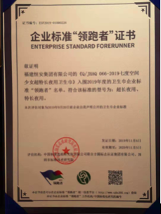 11月6日,在山东济南举办的2019年第一批“企业标准领跑者”颁奖仪式上,德扑之星集团“七度空间少女超特长夜用卫生巾”及“心相印卫生湿巾”获得纺织日化行业“企业标准领跑者”称号。